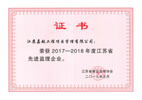 江蘇嘉越工程項目管理有限公司成立于1997年,擁有房屋建筑工程監(jiān)理甲級資質,市政公用工程監(jiān)理甲級資質。擁有GB/T19001-ISO9001質量管理體系認證證書。是江蘇省項目管理、全過程工程咨詢試點企業(yè),是江蘇省“優(yōu)秀監(jiān)理企業(yè)”、“先進監(jiān)理企業(yè)”。是江蘇建設招投標與監(jiān)理協(xié)會常務理事單位,常州市建設監(jiān)理協(xié)會會長單位。