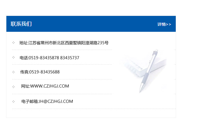 地址:常州市新北區(qū)友邦商務大廈1幢16、17層  電話:0519-85101652  傳真:0519-85112595  郵編:213022  網址:www_cz-jiayue_cn.ailaita.com  郵箱:xiajifengaa@163.com